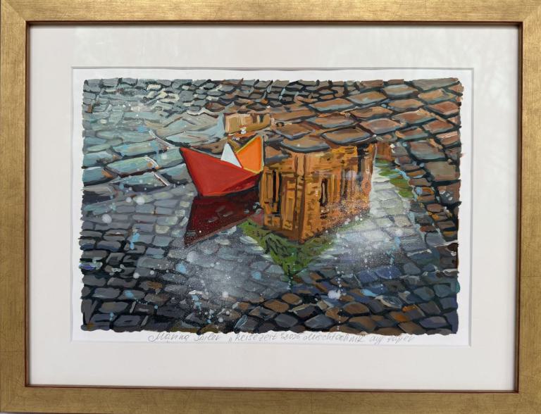 | Technik: | Mischtechnik auf Papier, gerahmt hinter entspiegeltem Glas |