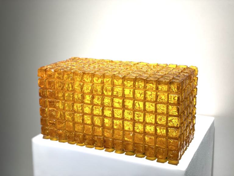 Technik: Verbundglasblock, gesägt, gemeißelt, gebrochen und patiniert