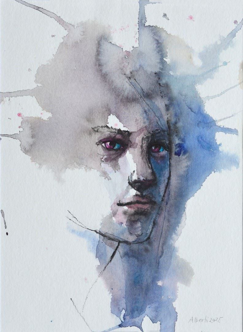 | Technik: | Mischtechnik auf Papier gerahmt mit Passepartout hinter entspiegeltem Glas |