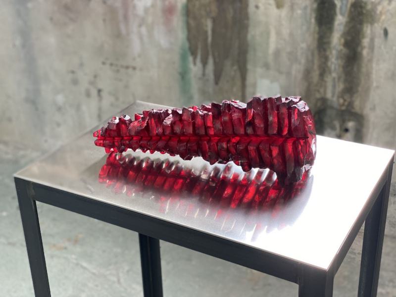 Verbundglasblock, gesägt, gemeißelt, gebrochen und patiniert |