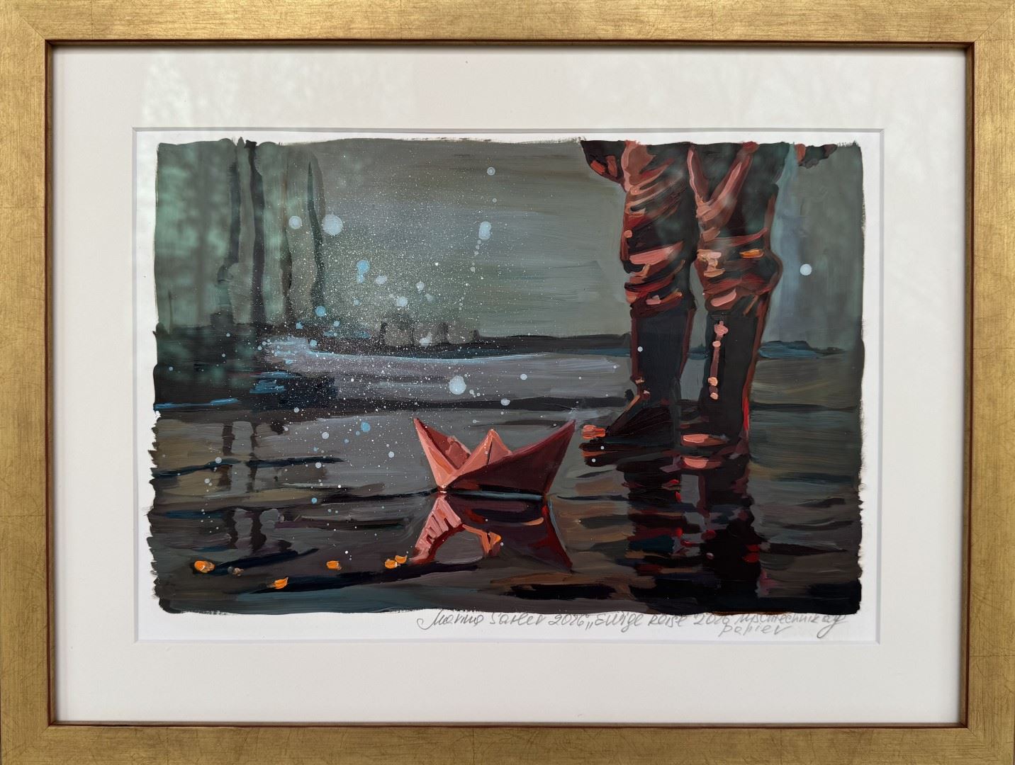Mischtechnik auf Papier, gerahmt hinter entspiegeltem Glas |