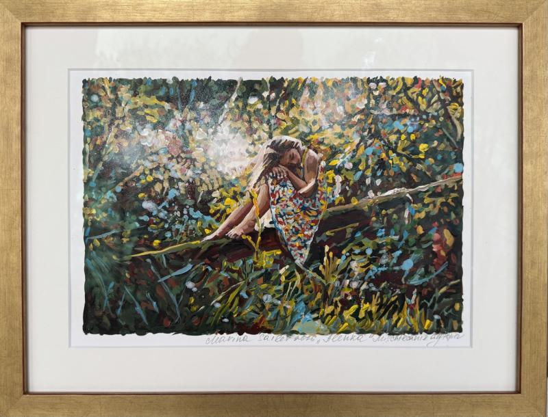 Mischtechnik auf Papier, gerahmt hinter entspiegeltem Glas |